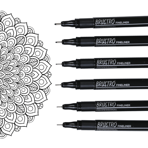 BRUSTRO Professional Pigment Based Fineliner | Black | Set of 6 - Tip Size 0.05mm, 0.1mm, 0.2mm, 0.3mm, 0.5mm, 0.8mm |Ideal For Technical Drawing,Waterproof,Artist Illustration,Sketching,Mandala