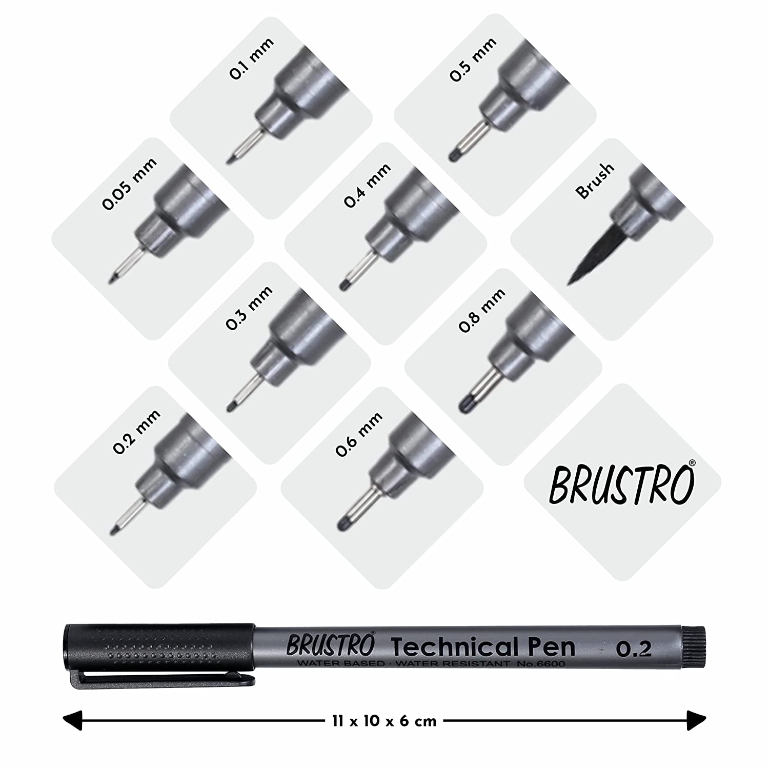 BRUSTRO Technical Pens Fineliner Set|Black| Set of 9|Ideal for Students,Adults|Doodle,Mandala,Fineart,Outline,Waterproof,Architecture,Technical Drawingwith Bristol Ultra Smooth A4 Size ( 20 +4 Sheets )