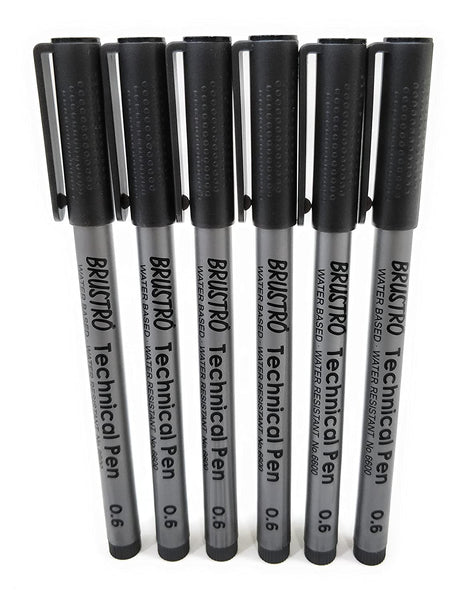 Brustro Technical Pen Black 0.6MM (Pack of 6)