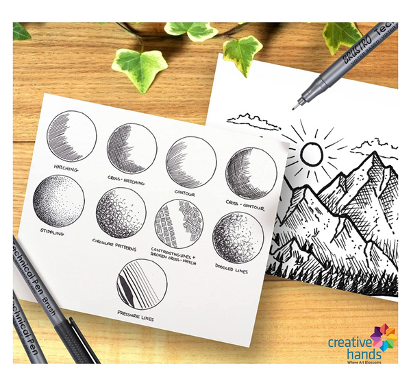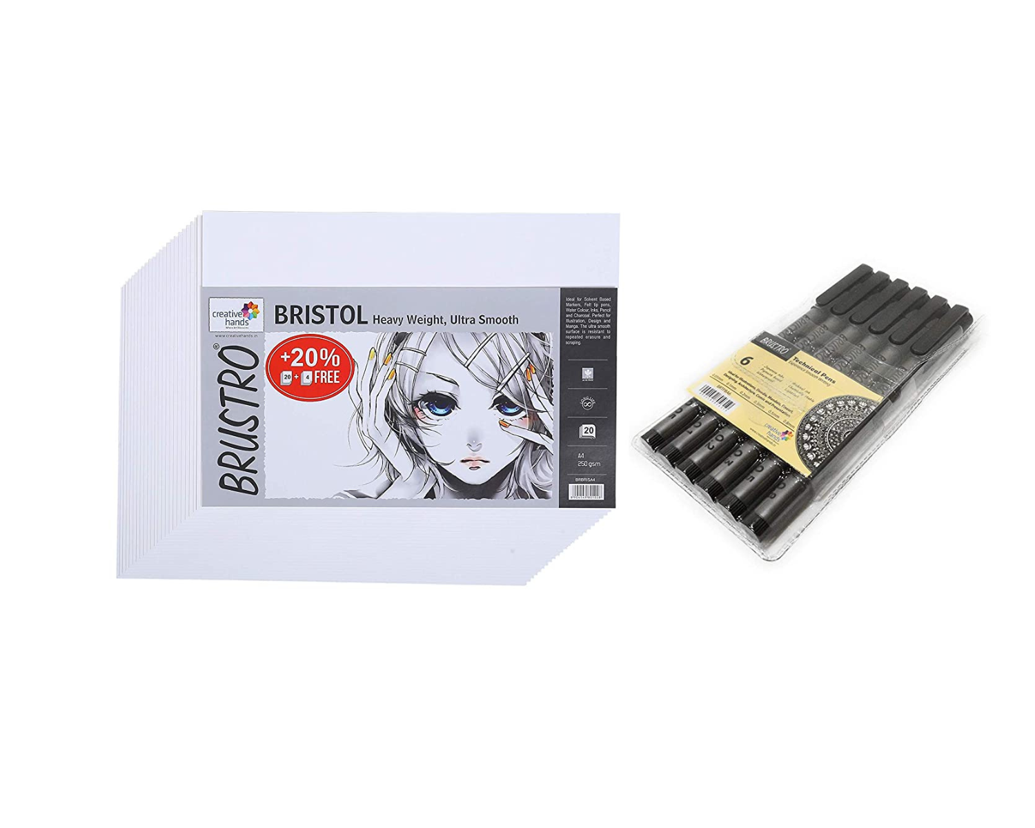 Brustro Technical Pen Fineliner Set|Black| Set of 6|Ideal for Students,Adults|Doodle,Mandala,Fineart,Outline,Waterproof,Architecture,Technical Drawing with Brustro Ultra Smooth Bristol 250 GSM A4 - (Pack of 12 Sheets)