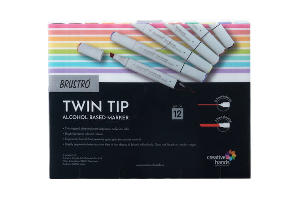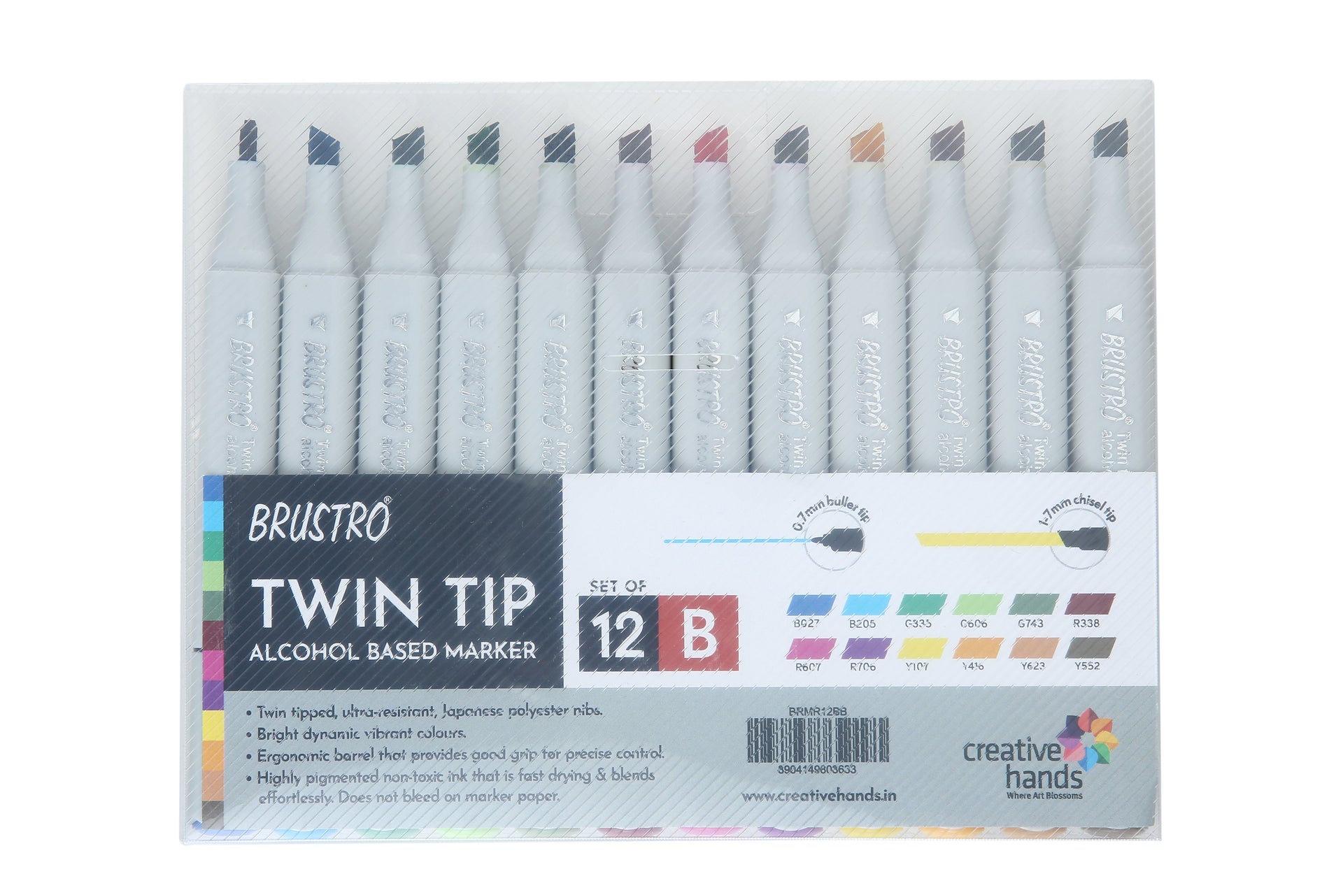 BRUSTRO Twin Tip Alcohol Based Marker Set of 12 - Basic B in Crossline PP See Through Box