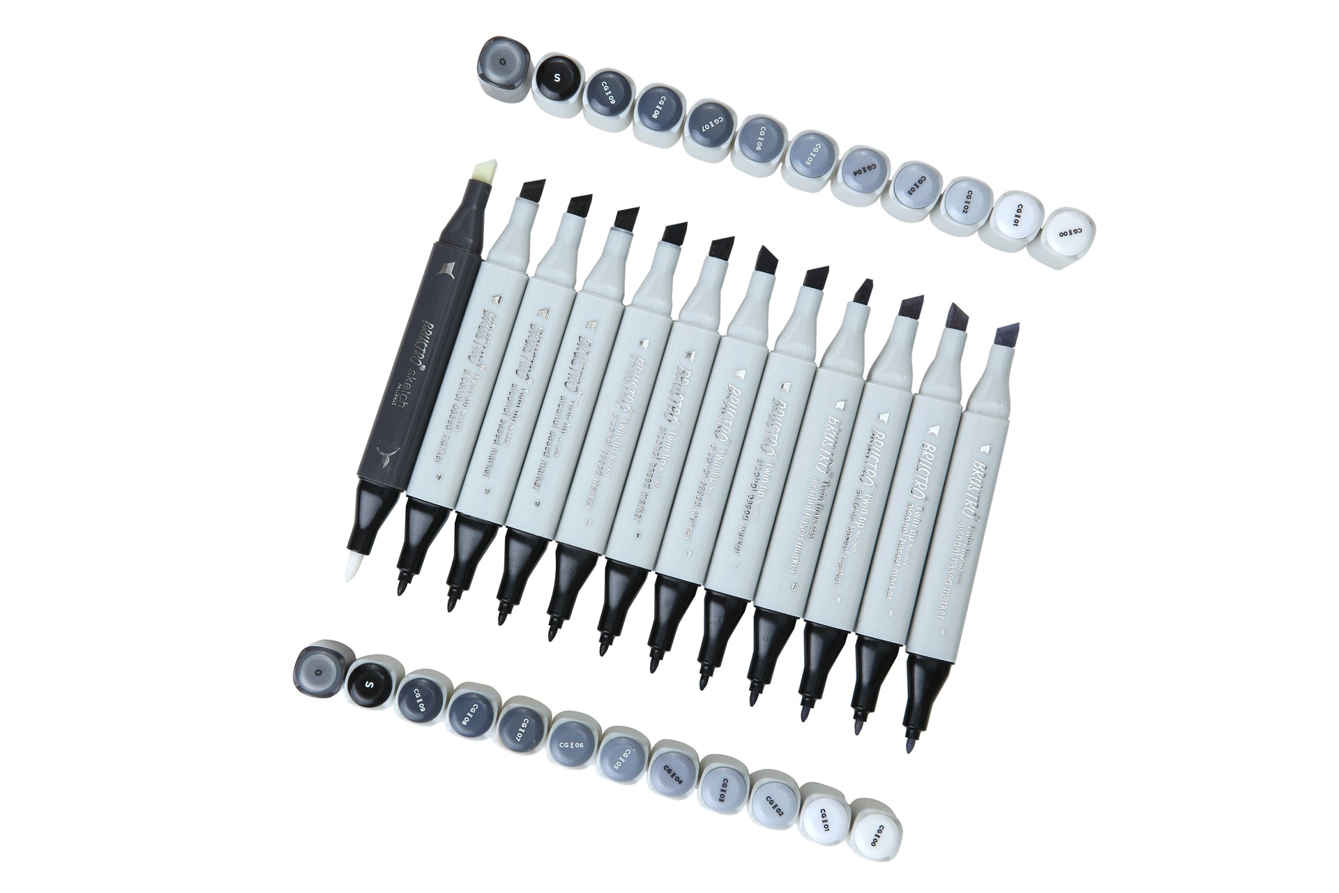 BRUSTRO Twin Tip Alcohol Based Marker Set of 12 - Cool Greys in Crossline PP See Through Box