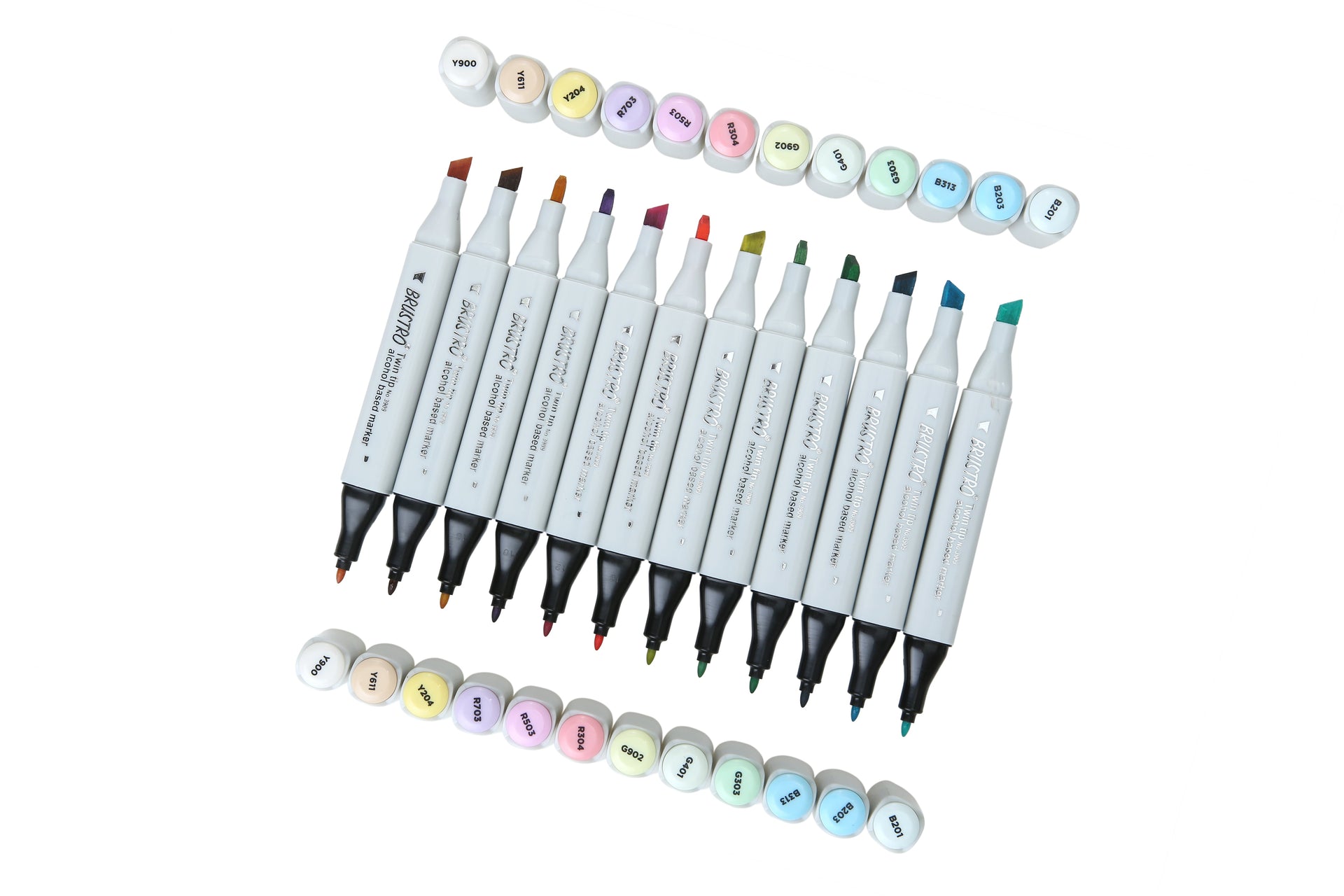 BRUSTRO Twin Tip Alcohol Based Marker Set of 12 - Pastel Tones in Crossline PP See Through Box