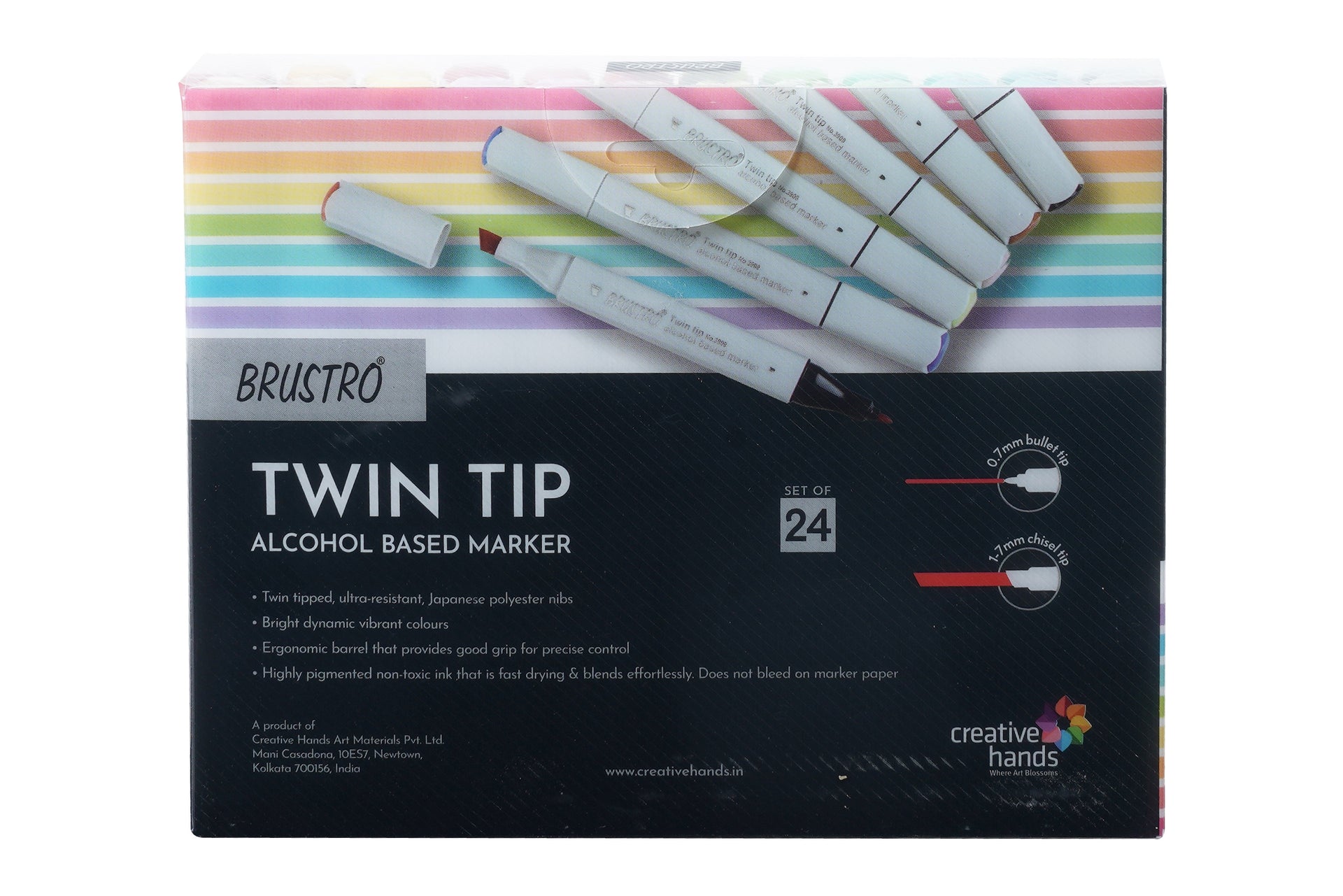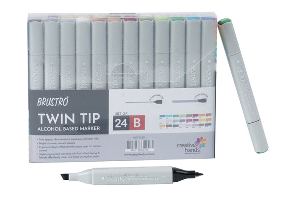 BRUSTRO Twin Tip Alcohol Based Marker Set of 24 Basic (B) in Crossline PP See Through Box