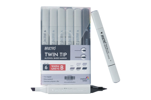 BRUSTRO Twin Tip Alcohol Based Marker Set of 6 - Warm Greys Set B in Crossline PP See Through Box