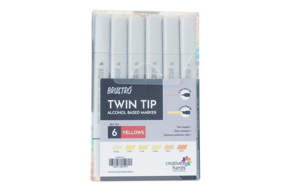 BRUSTRO Twin Tip Alcohol Based Marker Set of 6 (Yellows) in Crossline PP See Through Box