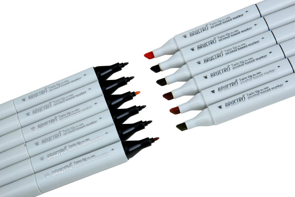 BRUSTRO Twin Tip Alcohol Based Marker Sets Earth Tone (12) in Crossline PP See Through Box