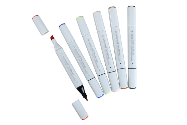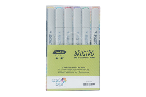 BRUSTRO Twin Tip Alcohol Based Marker Set of 6 in Crossline PP See Through Box - Tryout Set With random color selection