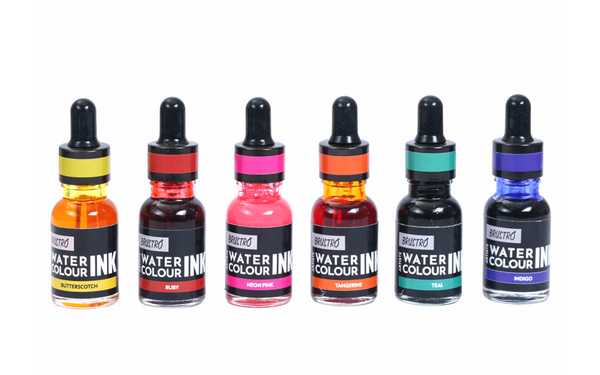 Brustro Watercolour Ink Set B of 6 x 15ml (6 Shades with Free Watercolour A5 Wiro Journal Worth Rs 399)