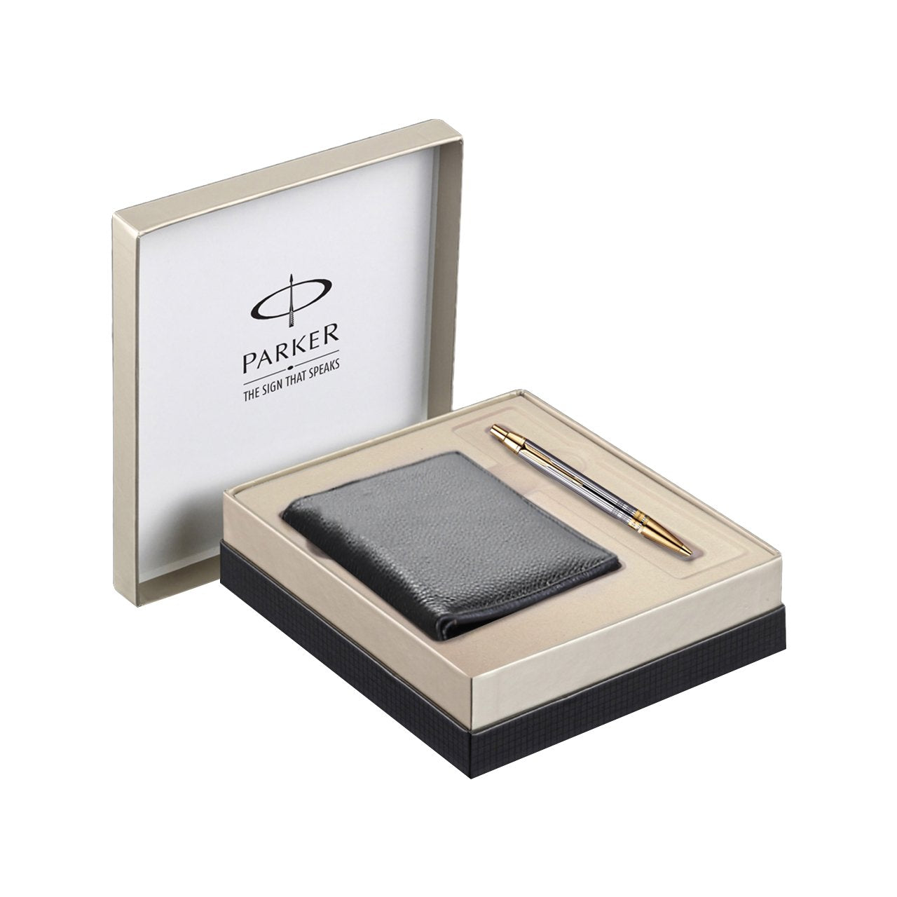 Parker Chiseled Shiny Chrome Gold Trim Ballpoint Pen, Blue Ink with Wallet