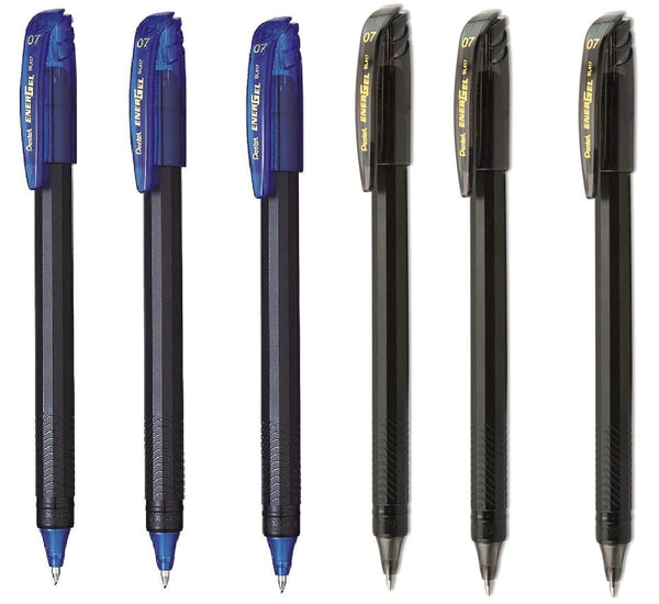 Pentel BL417 0.7mm EnerGel Roller Gel Pen - 3 Blue & 3 Black Ink, Pack of 6