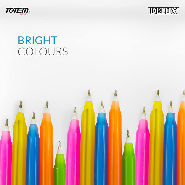 TOTEM Delux Ball Pens | 40 Pens (20 Blue Ink & 20 Black Ink) | Lightweight & Colourful Body Design | 0.7 mm Tip | Use and Throw Pens | For One Time Use | Ideal for School & Office Use