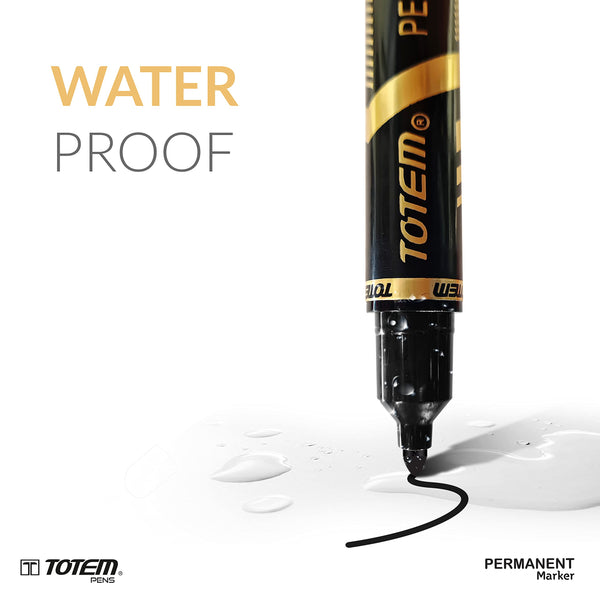 TOTEM Permanent Marker | 10 Black Ink Markers | Bullet Tip for Bold Writing | Suitable for Multiple Surfaces | Stationery Items | Students and Office Uses
