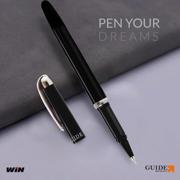 Win Guide Ball Pens | 50 Black Ink Pens | Premium Stylish Pens Set | 0.6 mm Sharp Tip | Lightweight Multicoloured Body available in 6 Colours |School and Office or Corporate Gifting | Pens for Writing