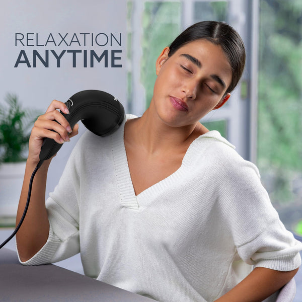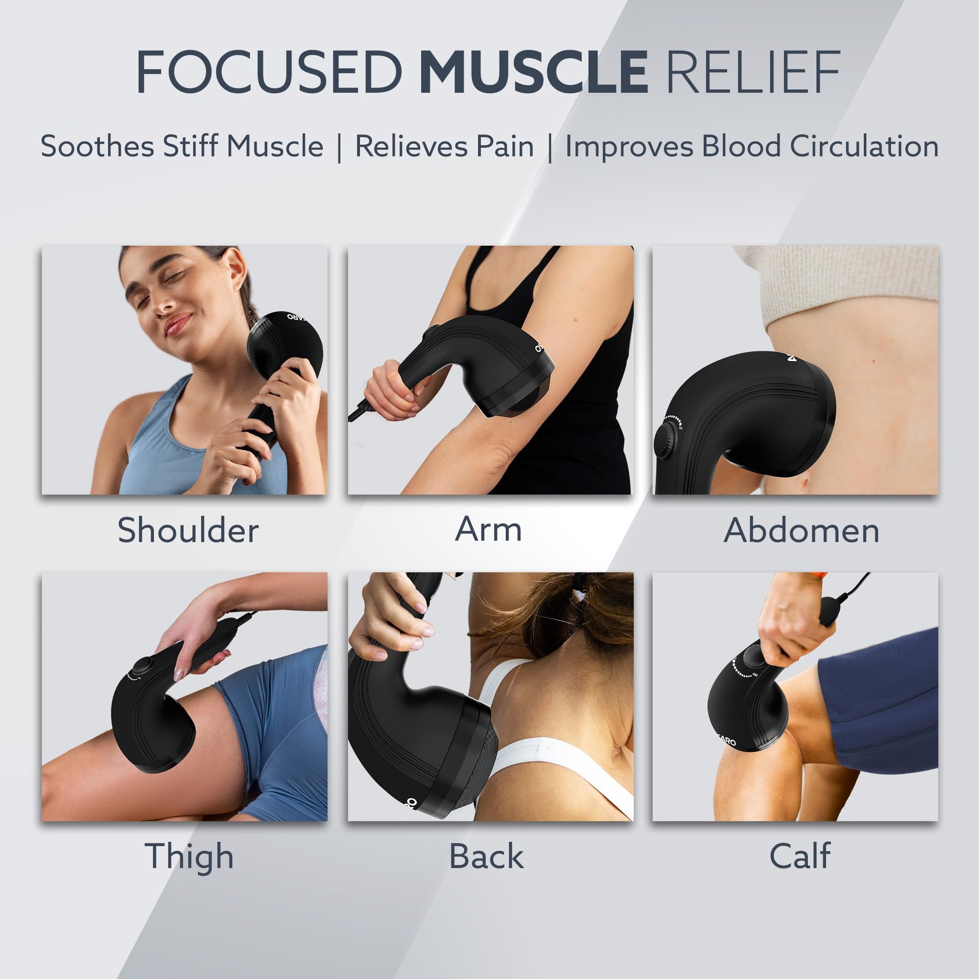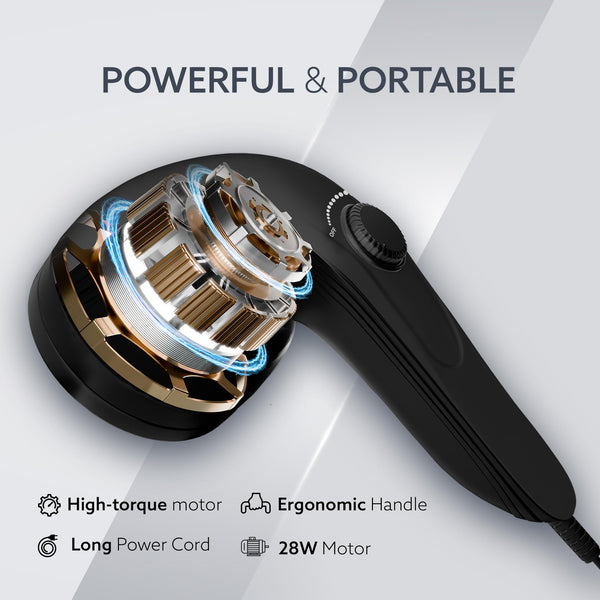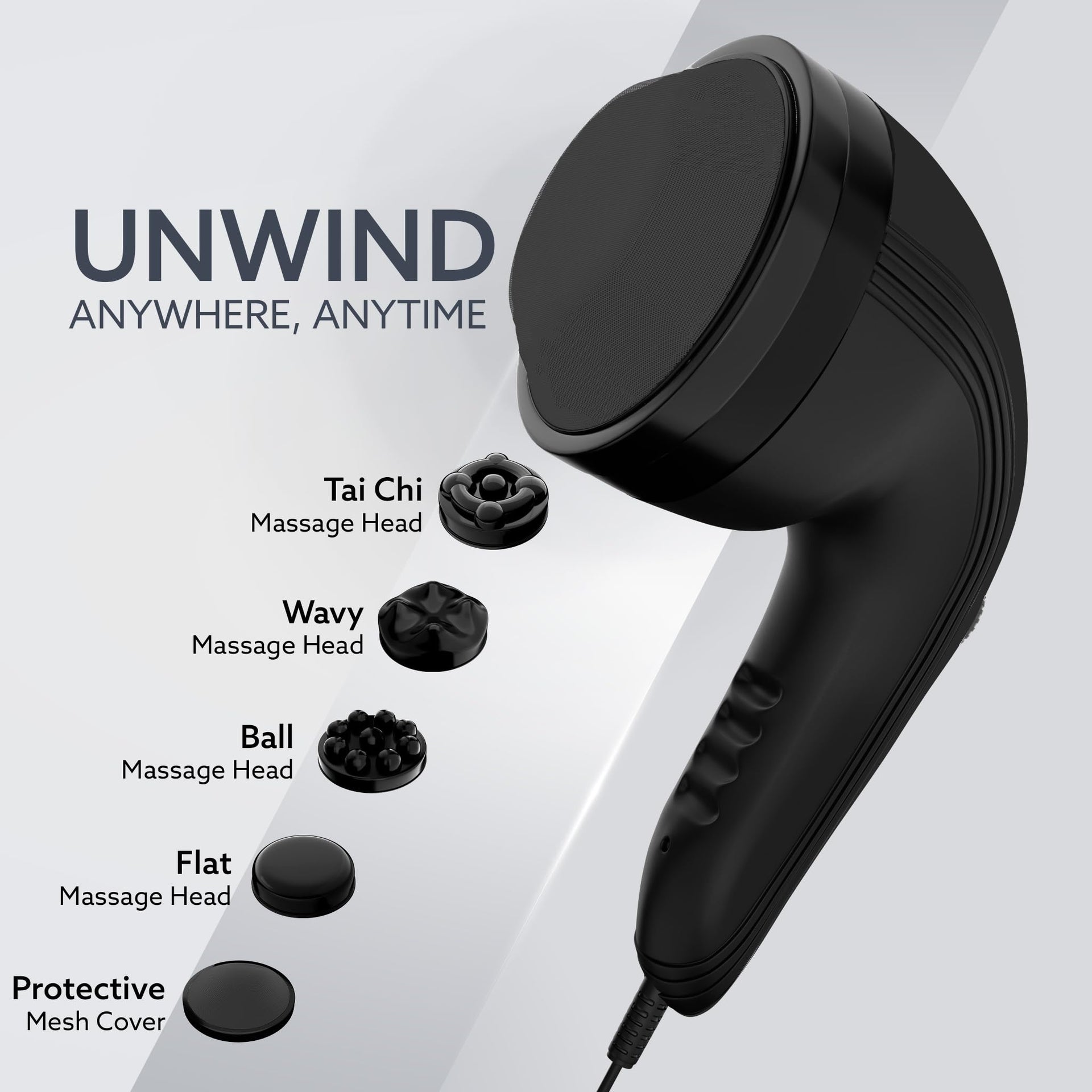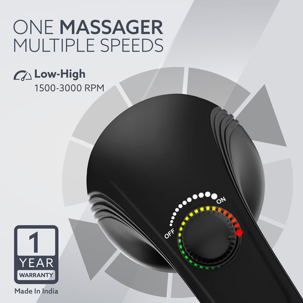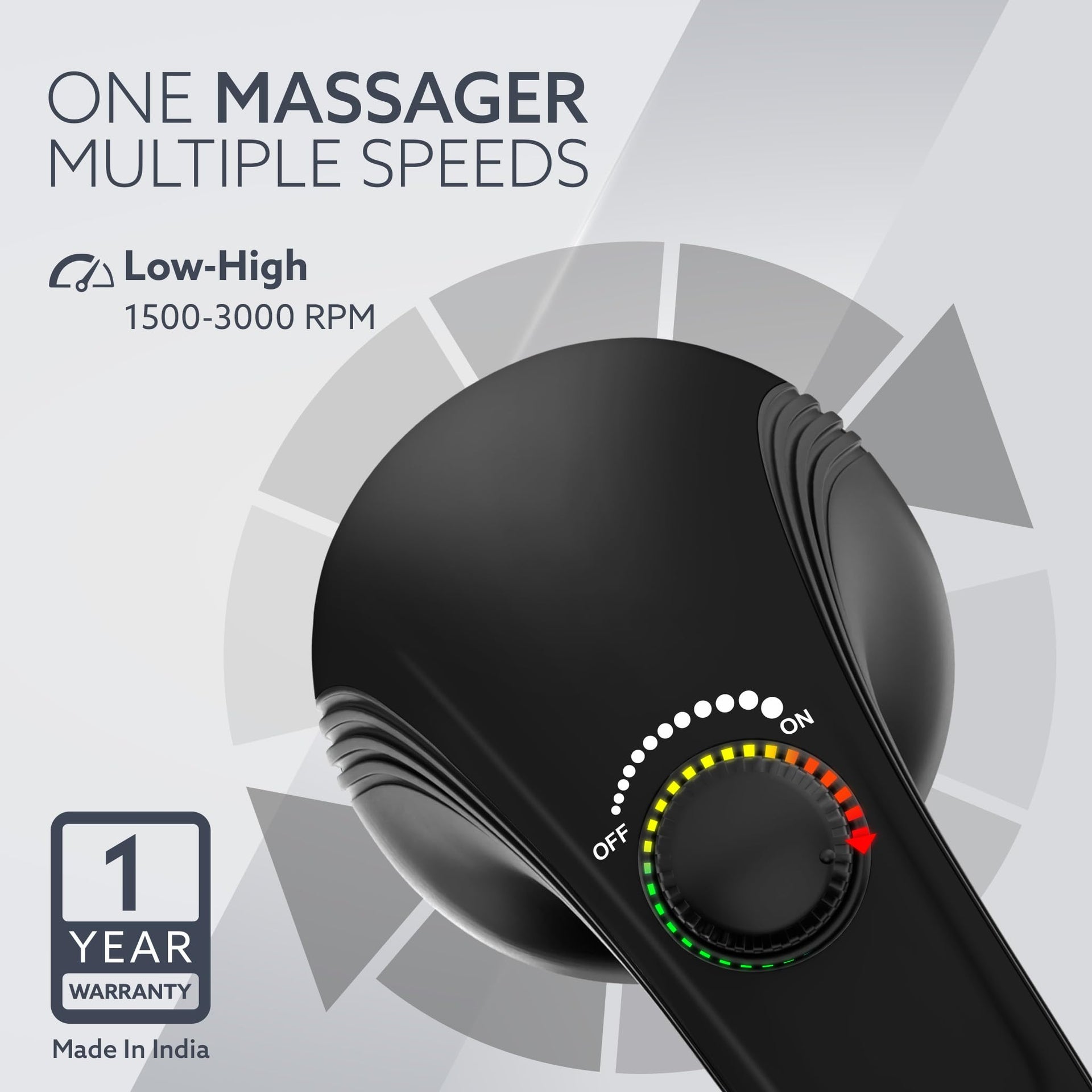 AGARO Atom Plus Electric Handheld Full Body Massager, 4 Massage Heads, Mesh Cover, Variable Speed Settings for Pain Relief and Relaxation, Back, Leg & Foot (Black)