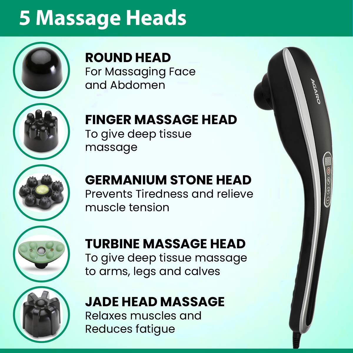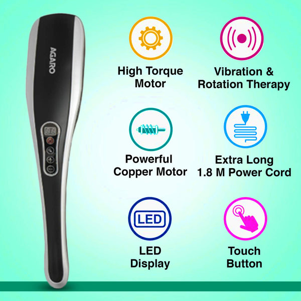 AGARO MARVEL Electric Handheld Full Body Hammer Massager with 5 Massage Heads, 5 Mode & 6 Speed Settings for Pain Relief & Relaxation, Back, Leg & Foot