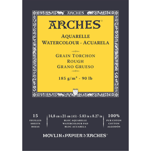 Arches Watercolour Paper an inimitable paper of the highest quality and is 100% cotton paper. Over the centuries, quality has always been paramount and today the manufacturing process brings together traditional techniques with the very latest advances in papermaking technology. Arches paper is made in the village of Arches in the Vosges, France. The high-quality water supplied by river provides optimum conditions to produce excellent paper.This legendary paper is still made with natural cotton fibres, carefully selected for their absorbency and durability. Arches Watercolour Paper is mould-made. The cylinder-mould machine ensures that fibres are evenly distributed which makes the paper extremely stable, so it will not warp or stretch when water is applied to it. Its composition with long fibres of 100% cotton gives the paper its strength, beauty, a natural, lasting whiteness and an inimitable touch with the look and feel of a vintage hand-made paper. Arches is the only paper mill in the world to gelatine size its watercolour paper "to the core". It also allows paints to be removed, either wet or dry, easily revealing the whiteness of the paper. Arches Watercolour can absorb a large amount of water with limited deformation. Arches Watercolour Paper are with 100% cotton fibre content. They are acid-free, pH-neutral, gelatine-sized, Chlorine Free and air-dried. Sheets have two natural deckle edges, two torn deckle edges, and are watermarked and embossed.