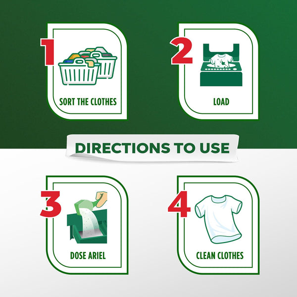 Details: New & Improved Ariel Matic gives you tough stain removal for a bright clean in just 1 wash. Especially designed to be used in top loading machines, Ariel Matic Top Load offers brilliant stain removal for full loads. The oxi-stain fighters for an impeccable clean wash after wash. It also provides deep down cleaning and long-lasting freshness. Formulated specifically for fully automatic washing machines, it generates the right amount of foam in the machine to deliver superior cleaning inside the machine itself, without damaging the machine due to excess foam. It requires just 1 scoop for normal loads, and 1.5 scoops for heavy loads, providing performance along with value. Ariel Matic’s cutting edge technology provides impeccable cleaning for all your clothes, and removes tough stains like juice, chocolate, tomato, and butter/ghee along with maintaining the brightness of the clothes. So now, say goodbye to stains and dullness!