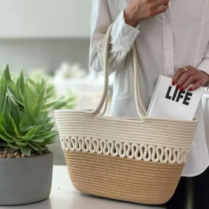 1. Versatile and Chic: This straw beach bag combines the charm of a small tote bag with the elegance of a basket bag. Its woven construction and kauna grass material give it a boho-inspired, timeless appeal. 2, Stylish and Sturdy: Crafted with durable bamboo, this mini handbag ensures longevity while remaining lightweight. Its half-moon shape and white hue makes it a fashionable choice for women. 3. Practical and Functional: This women tote handbag offers ample space to carry essentials without compromising on style. Its compact size and convenient handles make it perfect for beach outings to shopping trips. 4. On-Trend Fashion: Embrace the woven bag trend with this kauna grass bag that showcases intricate craftsmanship. It complements any outfit, making it an ideal accessory for women. 5. Everyday Elegance: Our straw beach bag is part of a curated collection of tote handbags tailored specifically for fashionable women. With its combination of versatility, style, and durability, it is the perfect addition to your accessory wardrobe.