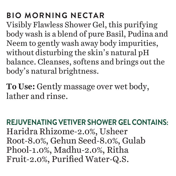 | DESCRIPTION This purifying body wash is a blend of pure Haridra, Usheer, Gehun, Gulab, madhu and Ritha to gently wash impurities, without disturbing the skin's pH balance. It helps to celanse, softens and bring out the bodys natural ingredients | | INGREDIENTS Haridra Rhizome, Usheer Root, Gehun Seed, Gulab Phool, Madhu, Ritha Fruit, Purified WaterQ.S. | | HOW TO USES Gently massage over wet body, lather and rinse, morning and evening. | Country of Origin: India Name of Mfg / Importer / Brand: Bioveda Action Research Company Address of Mfg / Importer / Brand: 42, Rampur Ghat Rd, Paonta Sahib, Himachal | | |