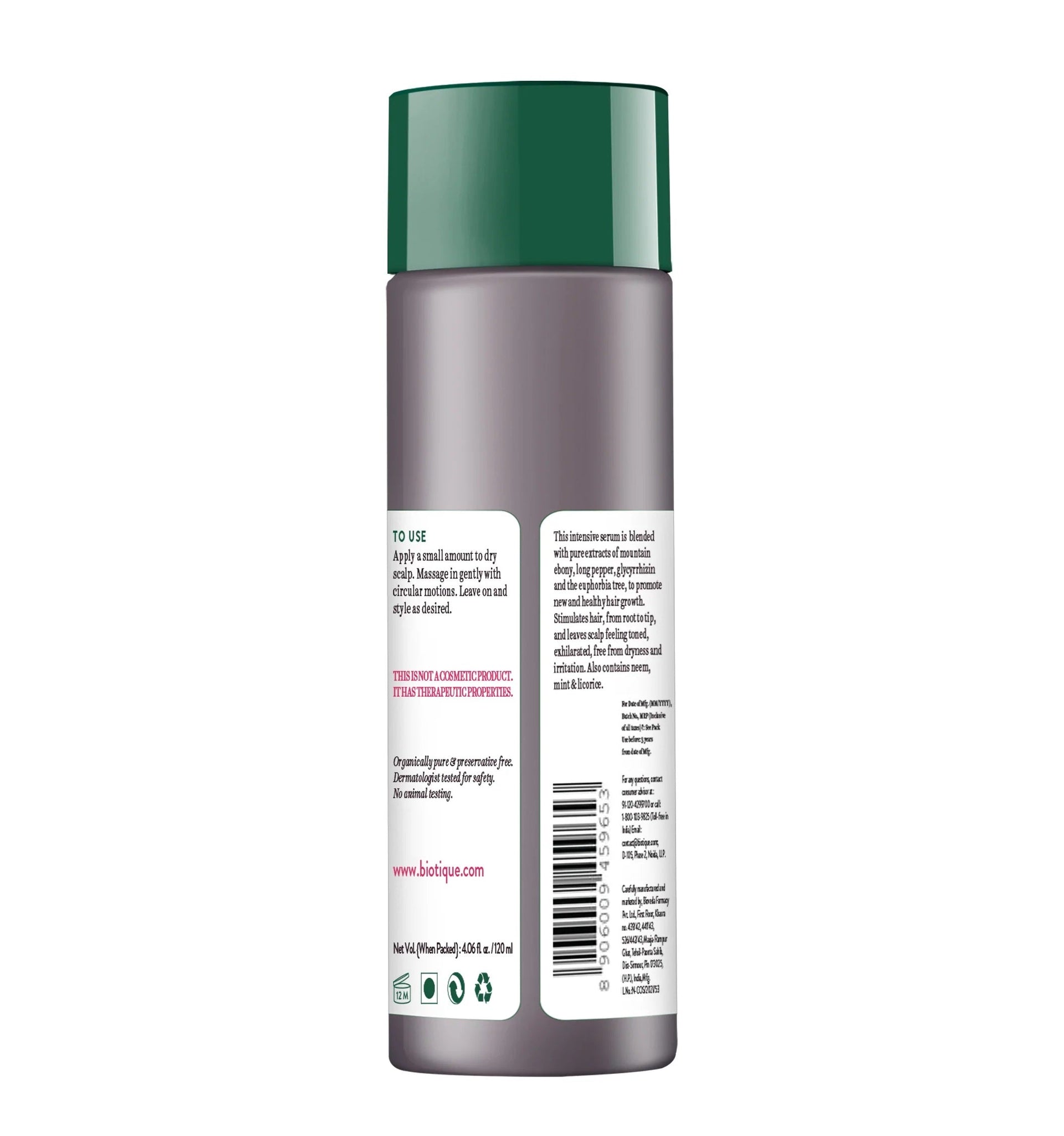 | DESCRIPTION This intensive serum is blended with pure extracts of mountain ebony, long pepper, glycyrrhizin and the euphorbia tree, to promote new and healthy hair growth. Stimulates hair, from root to tip, and leaves scalp feeling toned, exhilarated, free from dryness and irritation. | | INGREDIENTS Kanchnar Stem, Pudina Oil, Kusumbhi Oil, Neem Bark, Pipali Fruit, Mulethi Stem, Purified WaterQ.S. | | HOW TO USES Apply to cotton pads or washcloth and gently wipe over cleansed face and neck, morning and evening. | Country of Origin: India Name of Mfg / Importer / Brand: Bioveda Action Research Company Address of Mfg / Importer / Brand: 42, Rampur Ghat Rd, Paonta Sahib, Himachal | | |
