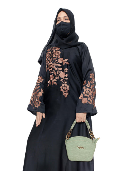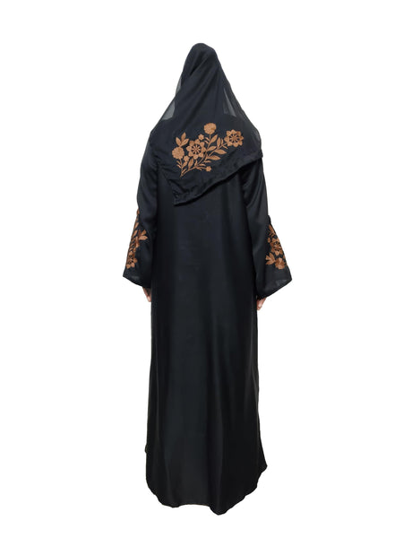 MODEST CITY Self Design Plain Black Front 4 Button Abaya or Burqa With Hijab for Women &Girls-(FREE)