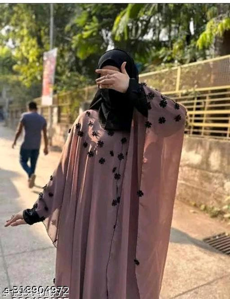 MODEST CITY Self Design Plain Black Front 4 Button Abaya or Burqa With Hijab for Women &Girls-(FREE)