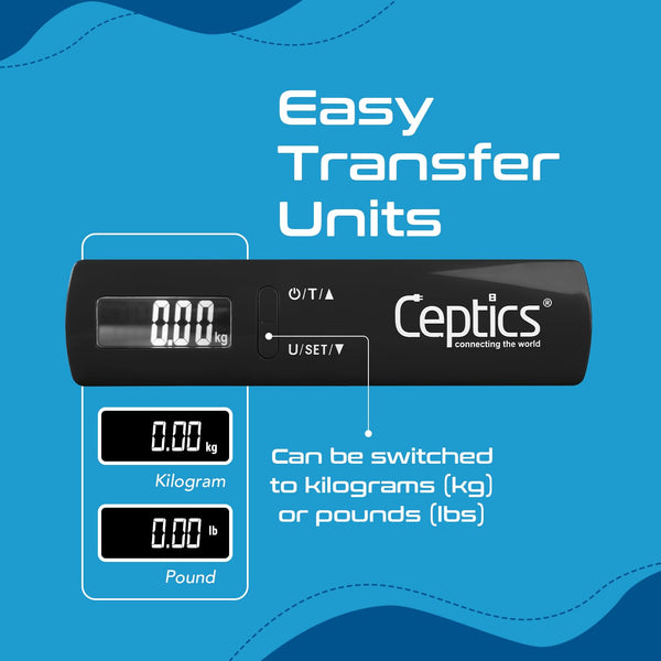 Ceptics weight machine for luggage weighing scale, luggage weighing scale capable capacity up to 50 Kg, weighing machine for luggage with LCD display luggage scale for bags, home, shop - BLACK