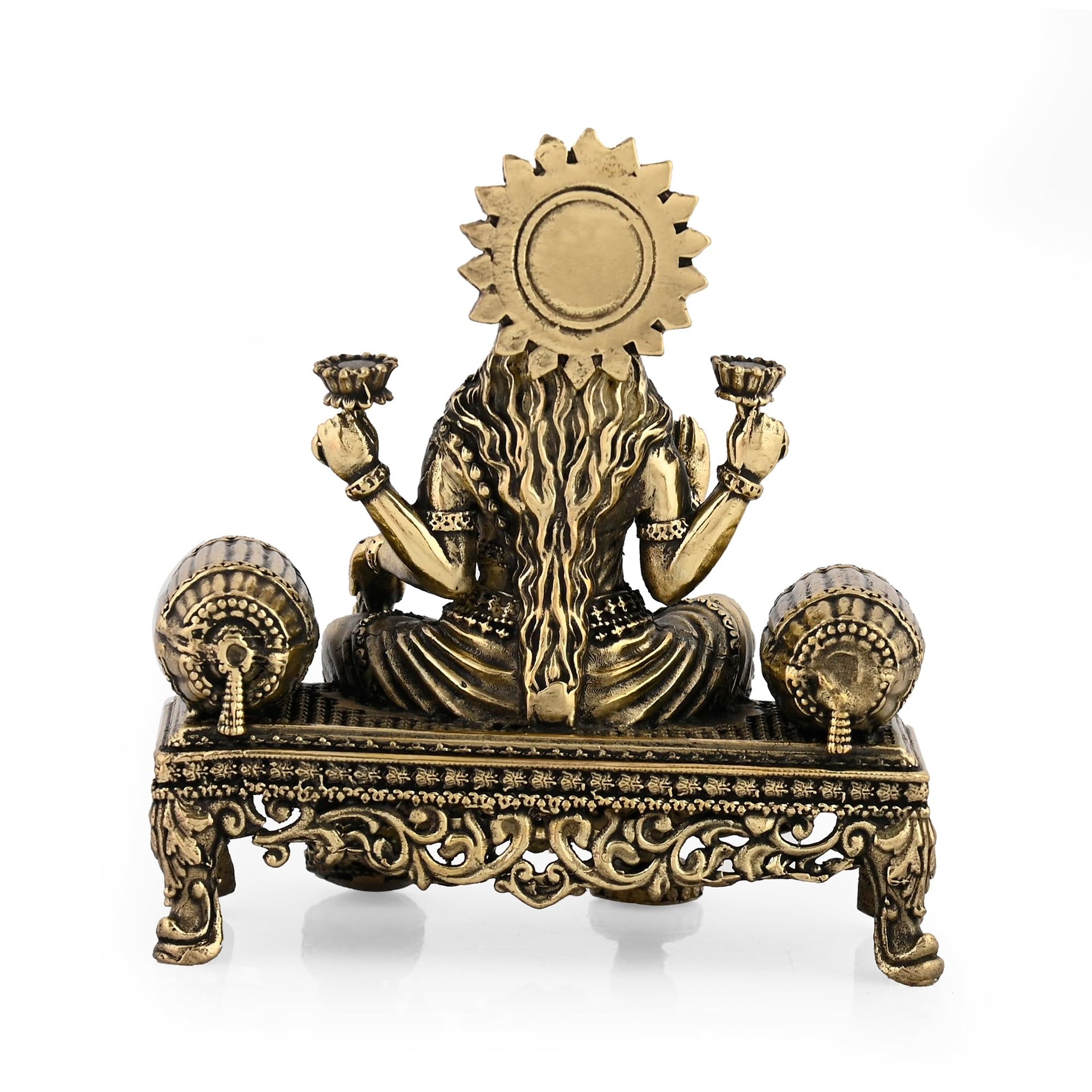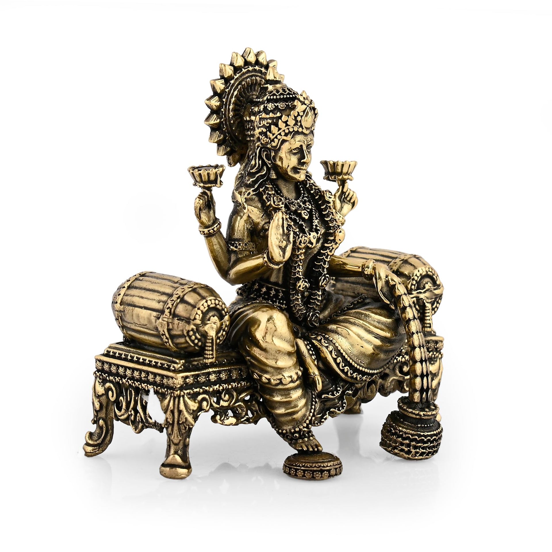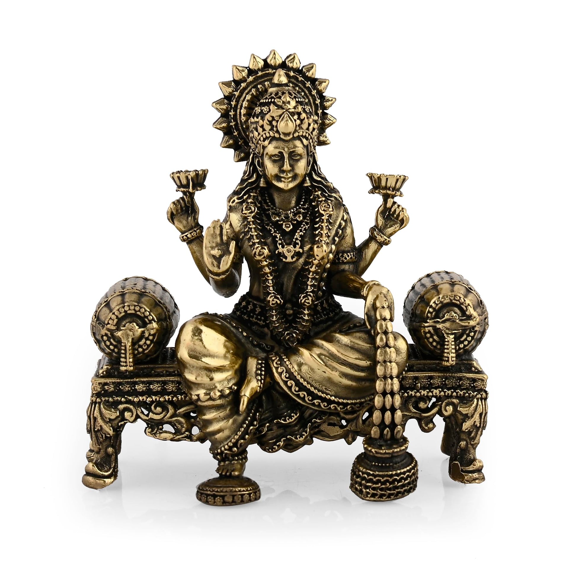 CraftVatika Brass Maa Lakshmi Devi Idol Statue Sitting on Throne - Laxmi Ji Ki Murti for Pooja Temple Room Diwali Gift & Home Décor Items (4 Inch Height)