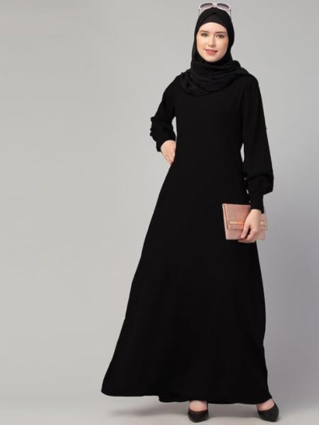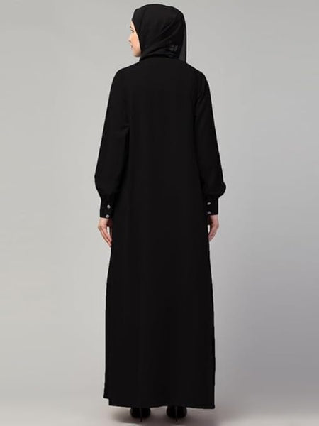 MODEST CITY Self Design Plain Black Front 4 Button Abaya or Burqa With Hijab for Women &Girls-(FREE)