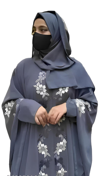 MODEST CITY Self Design Plain Black Front 4 Button Abaya or Burqa With Hijab for Women &Girls-(FREE)