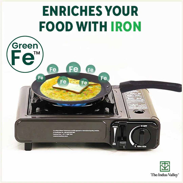 100% Pure Sheet Iron Omelette Tawa with Bakelite Handle, Seasoned, Toxin-free, Induction, 19cm, 0.56kg