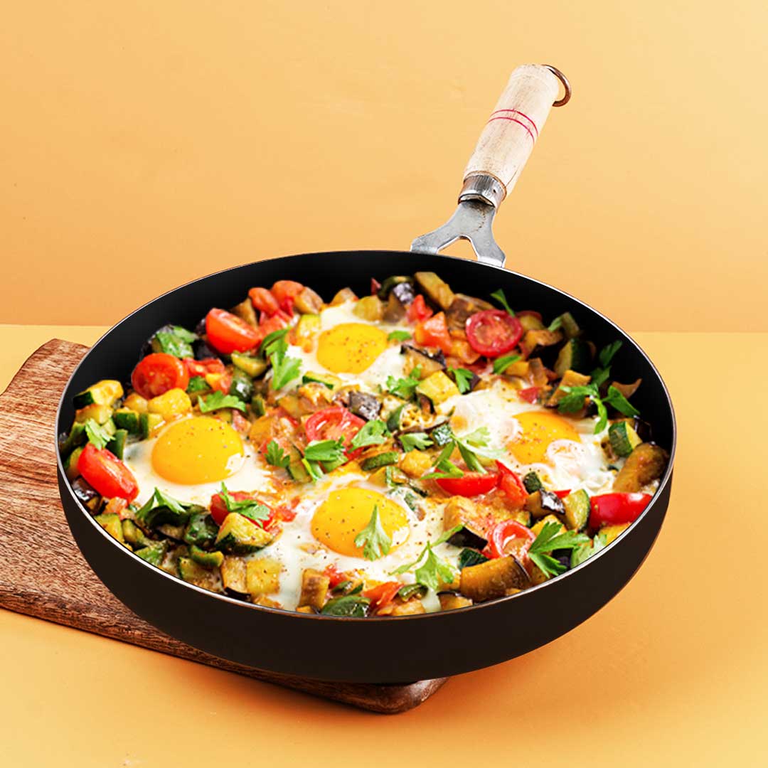 100% Pure Sheet Iron Fry Pan with Wooden Handle, Seasoned, Toxin-free, Induction, 16.5/25.4/30.4 cm