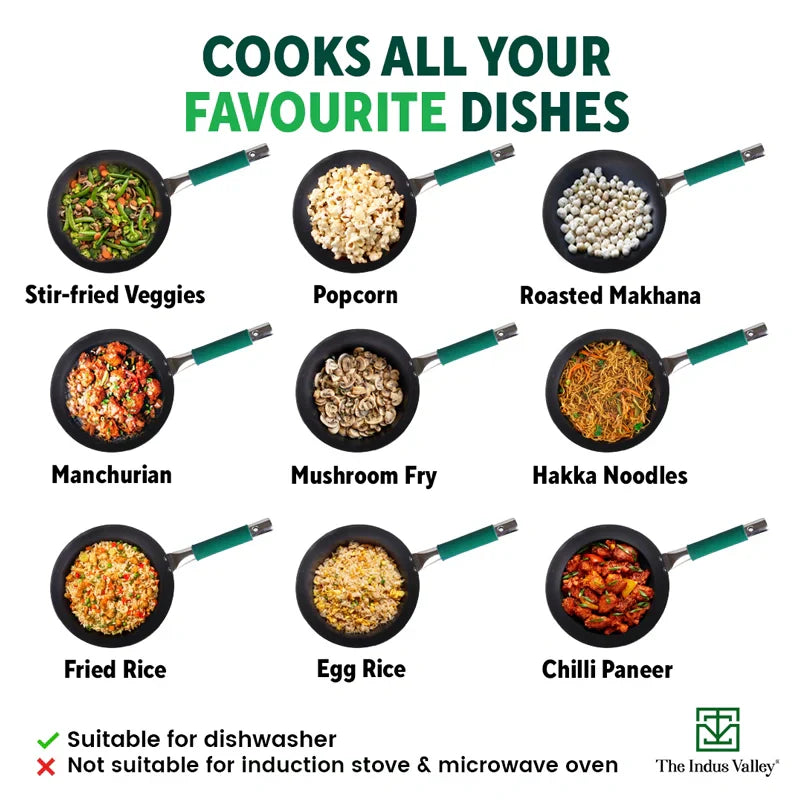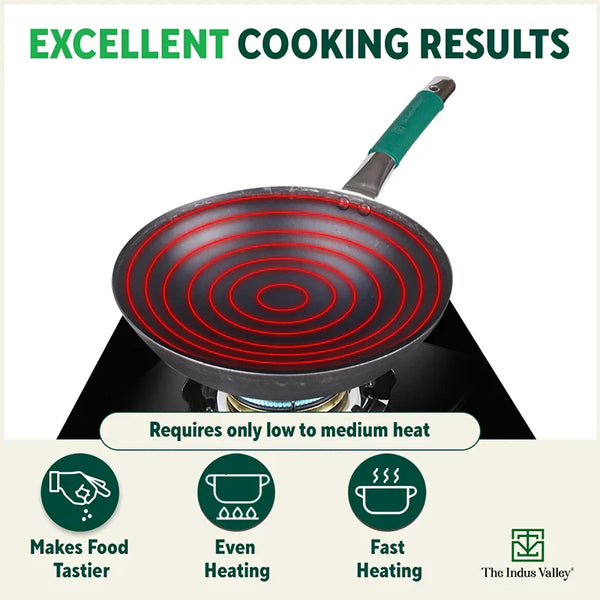 100% Pure Iron Wok with Steel Cool Touch Handle & Silicone Grip, Toxin-free Sheet Iron, Pre-seasoned, 2/3.5 L, 24.6/30.8 Cm, 1/1.4 Kg