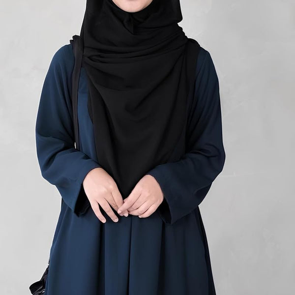 MODEST CITY Self Design Plain Black Front 4 Button Abaya or Burqa With Hijab for Women &Girls-(FREE)