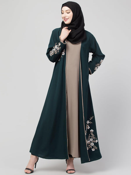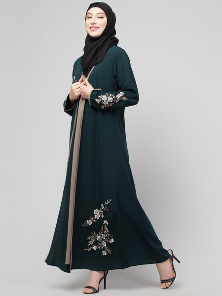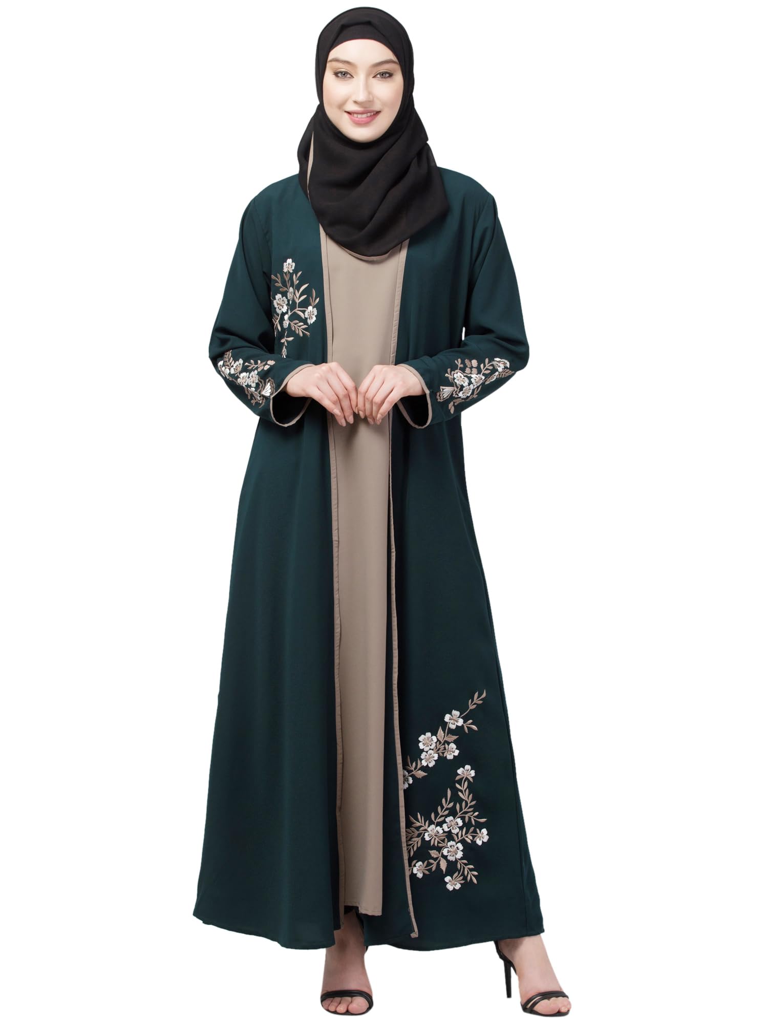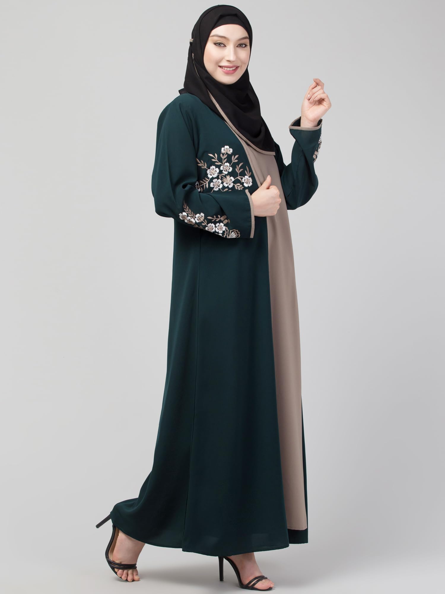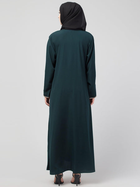 MODEST CITY Self Design Plain Black Front 4 Button Abaya or Burqa With Hijab for Women &Girls-(FREE)