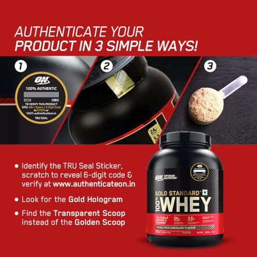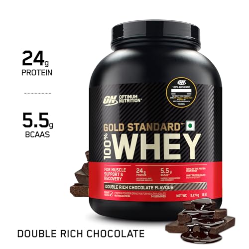Optimum Nutrition (ON) Gold Standard 100% Whey Protein Powder 5 lbs, 2.27 kg (Double Rich Chocolate), for Muscle Support & Recovery, Vegetarian - Primary Source Whey Isolate