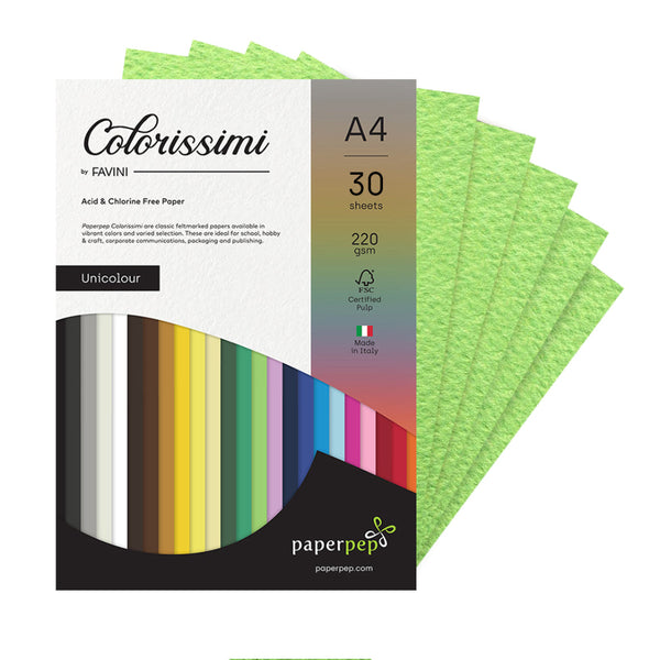 Paper Pep Colorissimi Card Stock 220Gsm A4 Pistacchio (Pastel Green) Unicolor Pack Of 30 Sheets