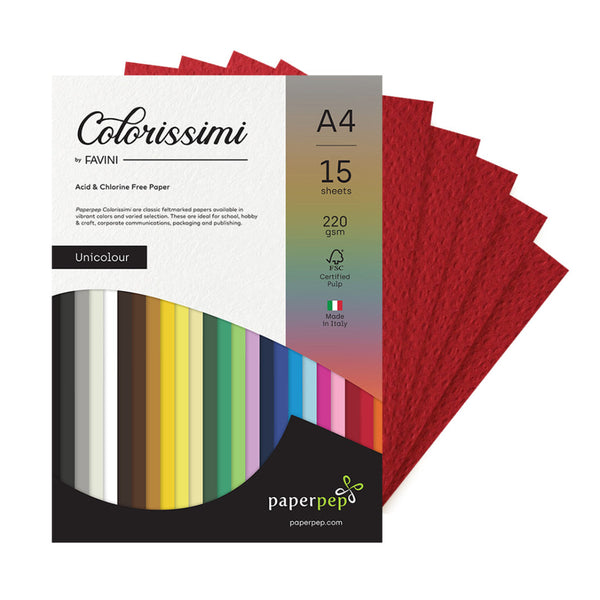 Paper Pep Colorissimi Card Stock 220Gsm A4 Rubino (Dark Red) Unicolor Of 15 Sheets