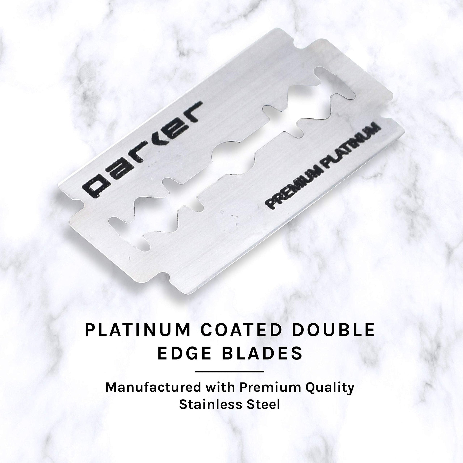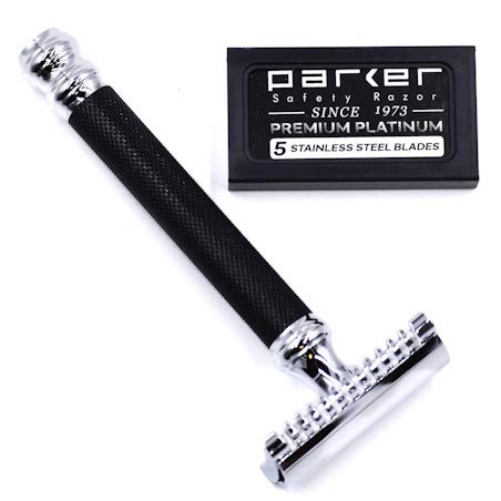 Parker 26C –Black Handle Three Piece Open Comb Double Edge Safety Razor & 5 Premium Platinum Double Edge Razor Blades