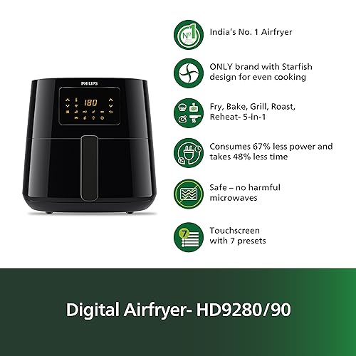 PHILIPS Digital XL Airfryer HD9280/90 (Wifi enabled), Touch Panel, 5000 Series XL 6.2 Ltr (1.2kg), Rapid Air Technology