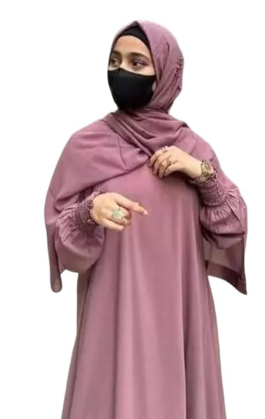 MODEST CITY Self Design Plain Black Front 4 Button Abaya or Burqa With Hijab for Women &Girls-(FREE)