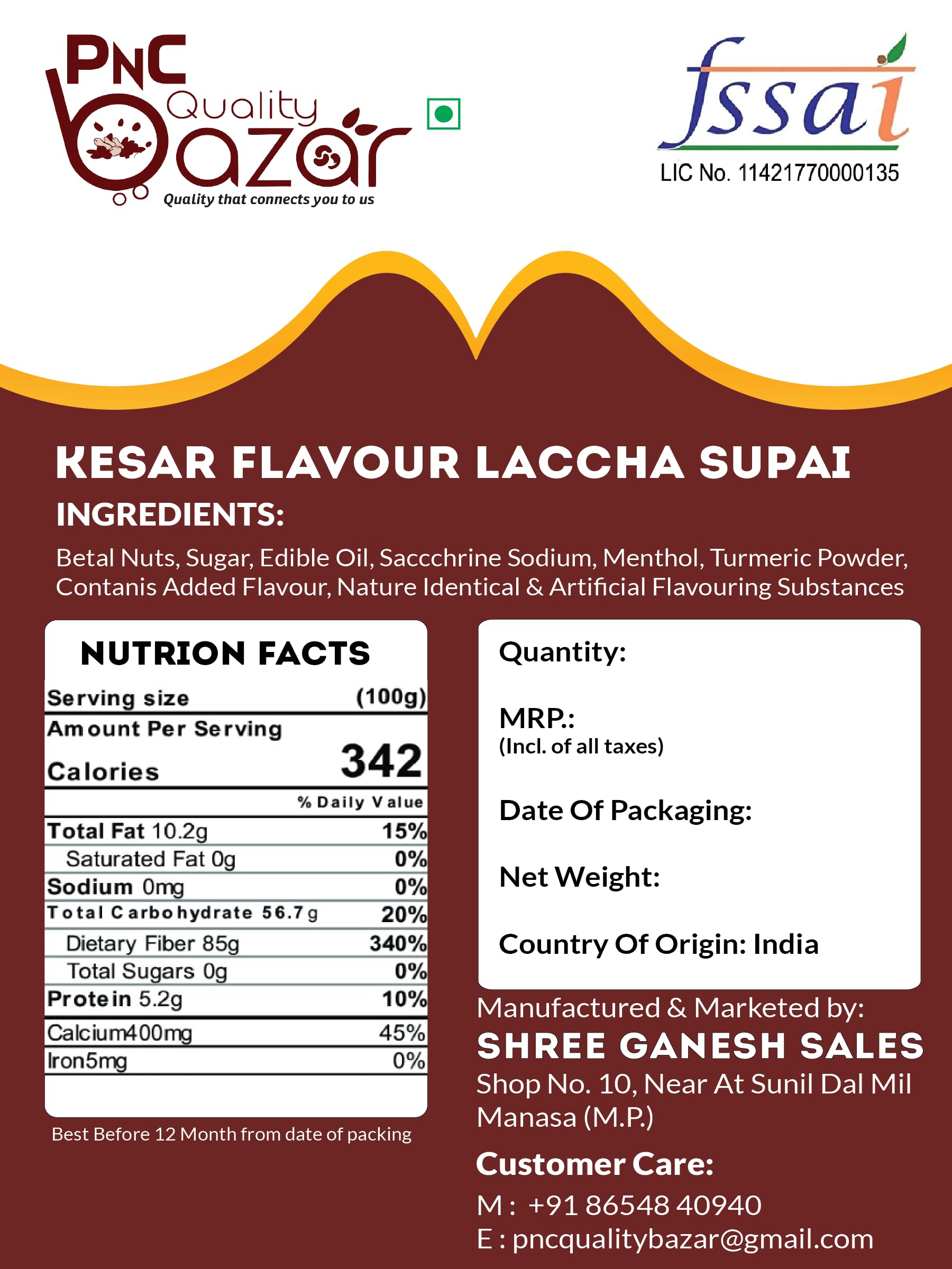 PNC Quality Bazar Salli Supari Mukhwas (Soft&Sweet) Kesar Flavour laccha supai | Mouth Freshener (with Mint) (400g)