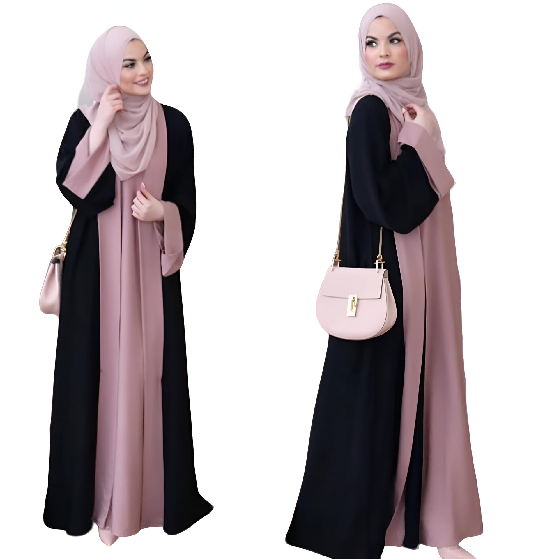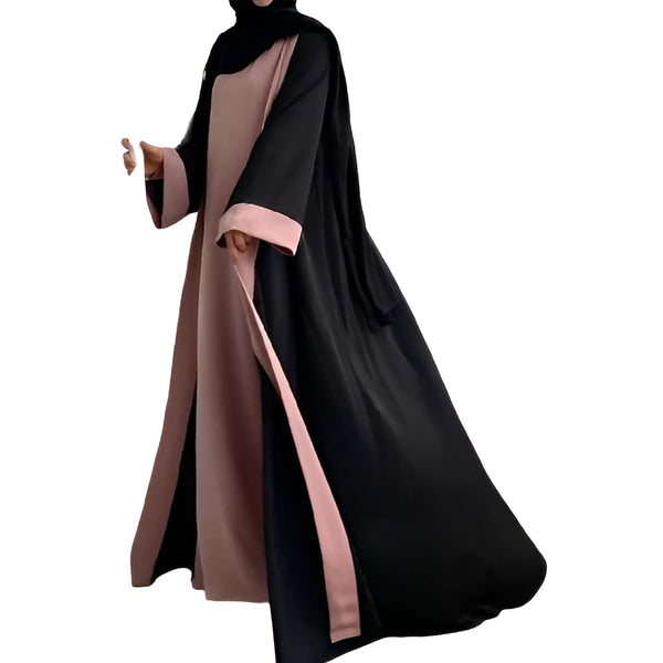 MODEST CITY Self Design Plain Black Front 4 Button Abaya or Burqa With Hijab for Women &Girls-(FREE)