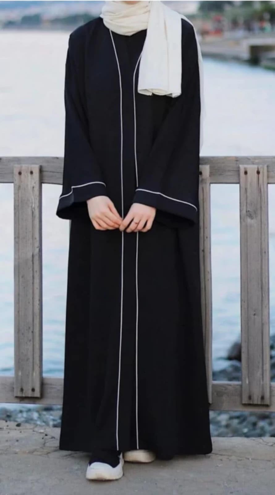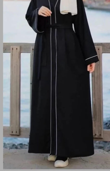 MODEST CITY Self Design Plain Black Front 4 Button Abaya or Burqa With Hijab for Women &Girls-(FREE)
