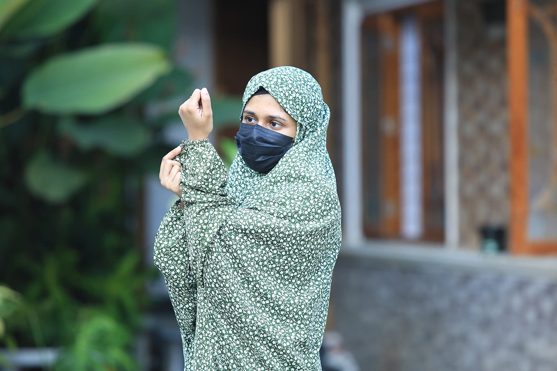 MODEST CITY Self Design Plain Black Front 4 Button Abaya or Burqa With Hijab for Women &Girls-(FREE)