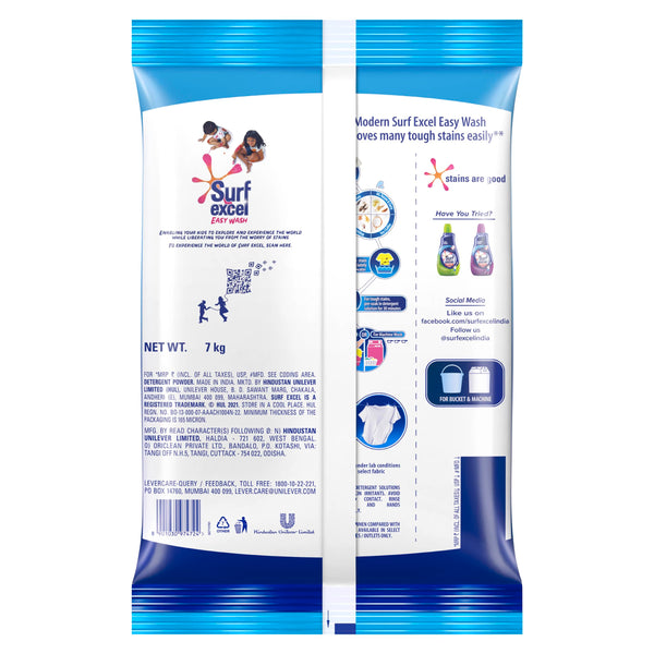 Surf Excel Easy Wash Detergent Powder7 kg | Superfine Washing Powder | Dissolves Easily & Removes Tough Stains | Suitable for all Washing Machines