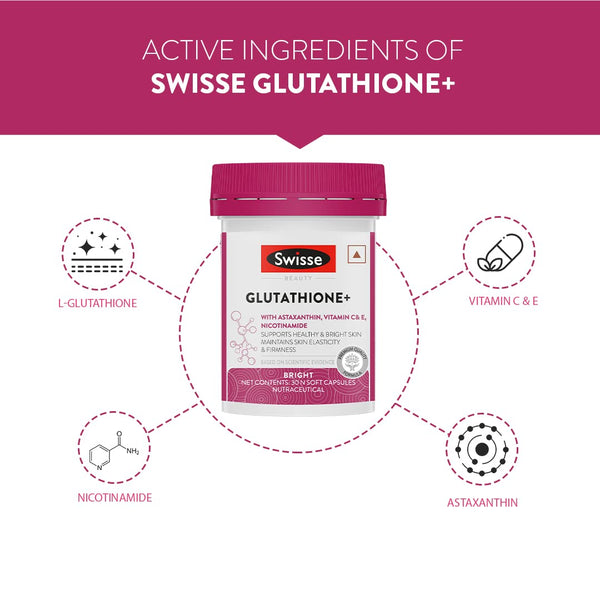 Swisse Glutathione+ Manufactured In Australia, Glutathione Tablets with Astaxanthin, Vitamin C & E, Nicotinamide For Healthy, Radiant & Youthful Skin (30 Capsules, Only 1 Capsule Per Serving)