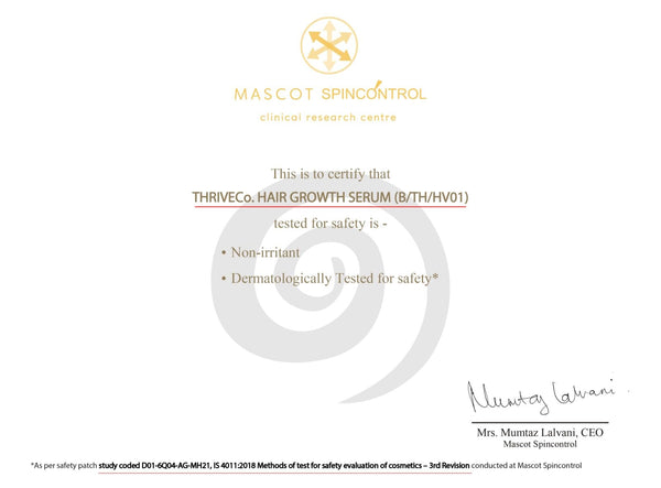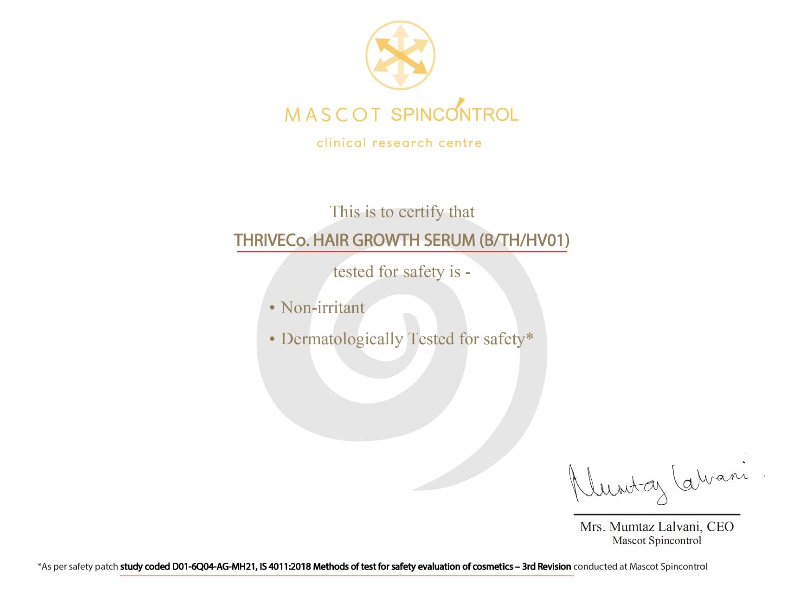 - HAIR GROWTH: NO CLAIMS. ONLY EVIDENCE. With ThriveCo's Bestseller Hair Growth Serum 2.0, witness Clinically-Proven 150% IMPROVEMENT IN HAIR GROWTH in just 8 weeks, in addition to measurable improvements in Hair Density, Hair Fall Control and Hair Thickness. The pathbreaking results have been recognized and published by the international Journal of Cosmetic Dermatology.