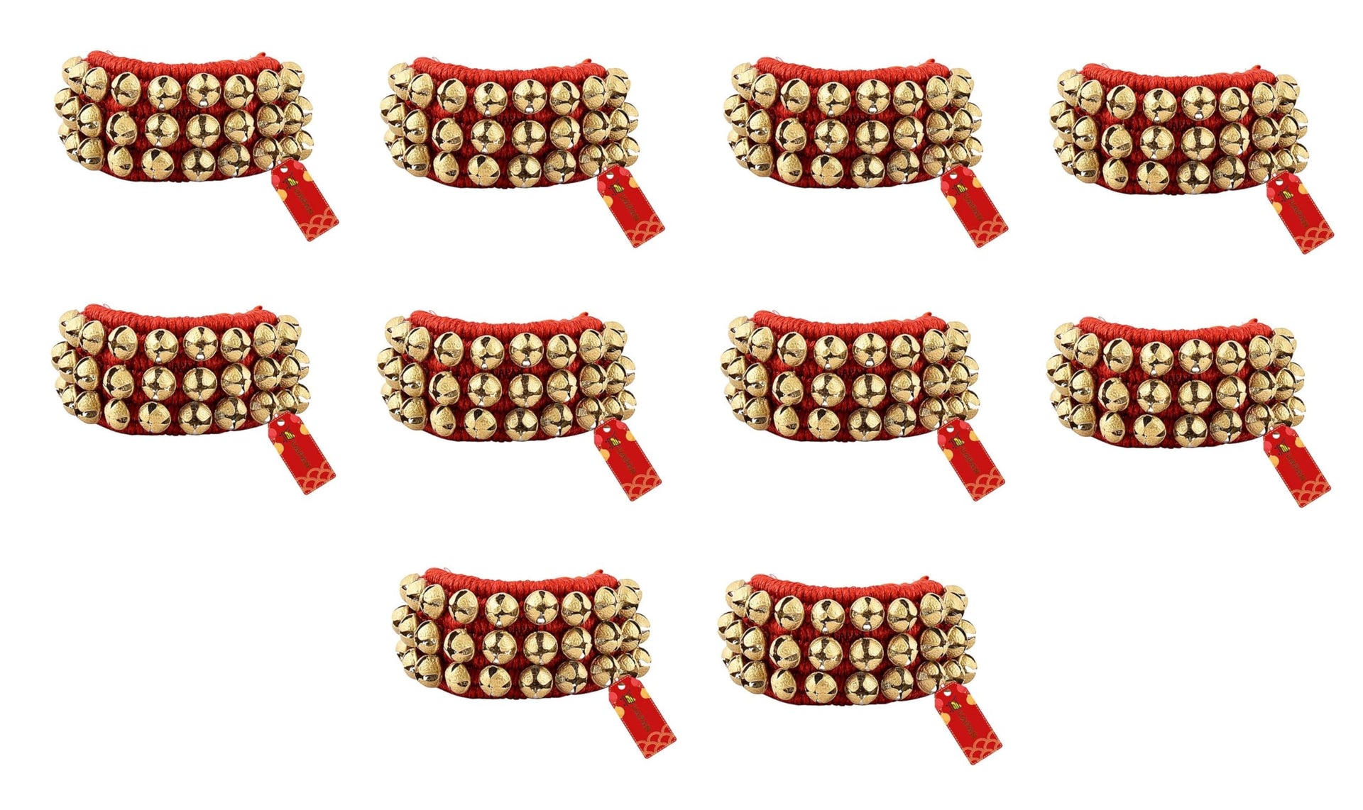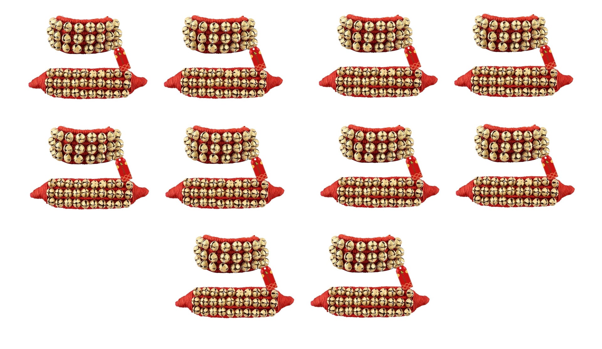 UAPAN Brass Ghungroo Anklets Bells For Women I 3 Line Pad I Red I 10 Pair I Perfect for traditional Indian dance